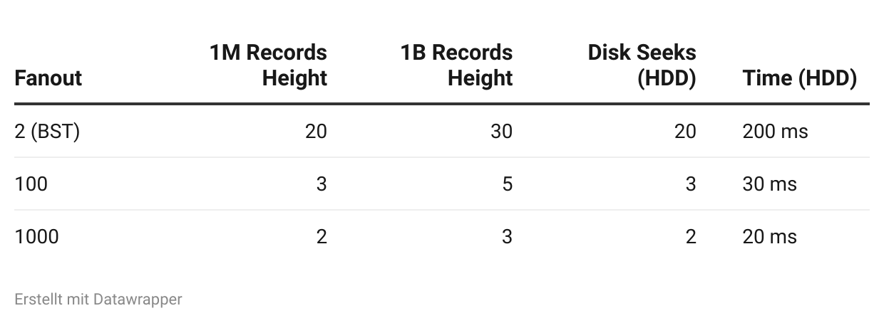 1 billion records → height = 5 (because 100⁵ = 10,000,000,000)