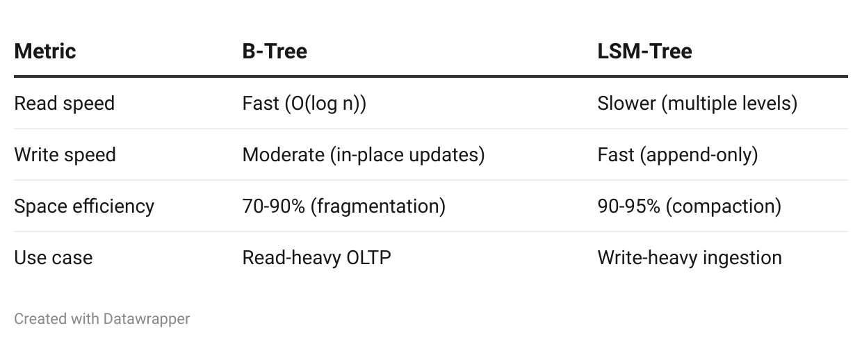 Have you compared B-Trees to LSM-Trees for write-heavy workloads?